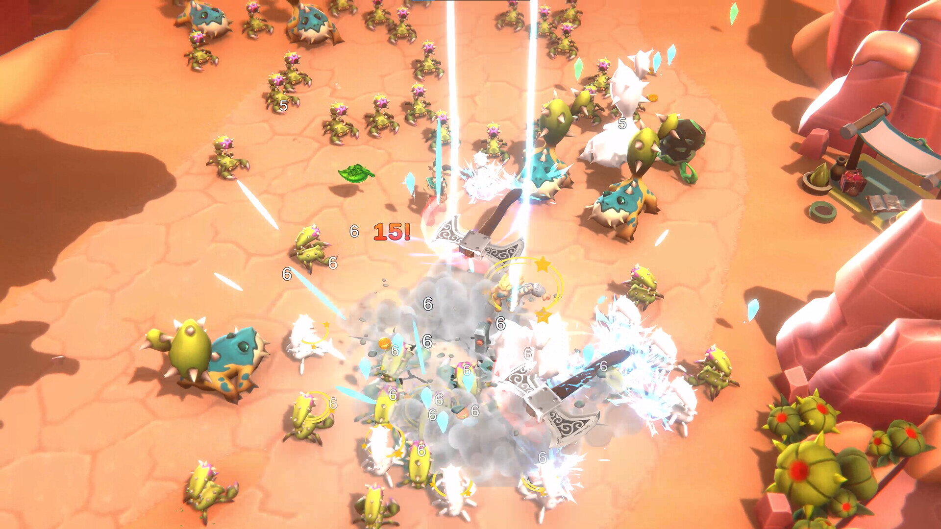 Intense Real-Time Combat: Engage in thrilling Survivor-style battles with hundreds of ferocious enemies, making use of countless Weapon and Trinket combinations.